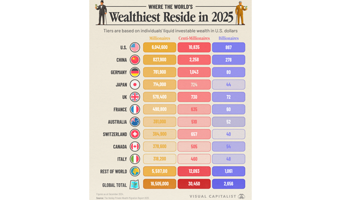 A distribuição global de riqueza revela um cenário altamente concentrado. Nesta imagem temos os países com as maiores populações ricas, divididas em...